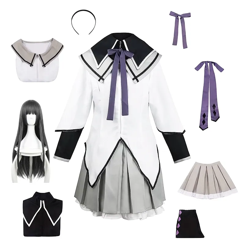 This Akemi Homura cosplay costume includes every detail, from the sailor collar to the elegant purple ribbon. The set features a skirt, stockings, and a headband for a complete look. Crafted from comfortable, durable fabric, it ensures a perfect fit for long hours at conventions or photoshoots. Available in various sizes to suit your style.