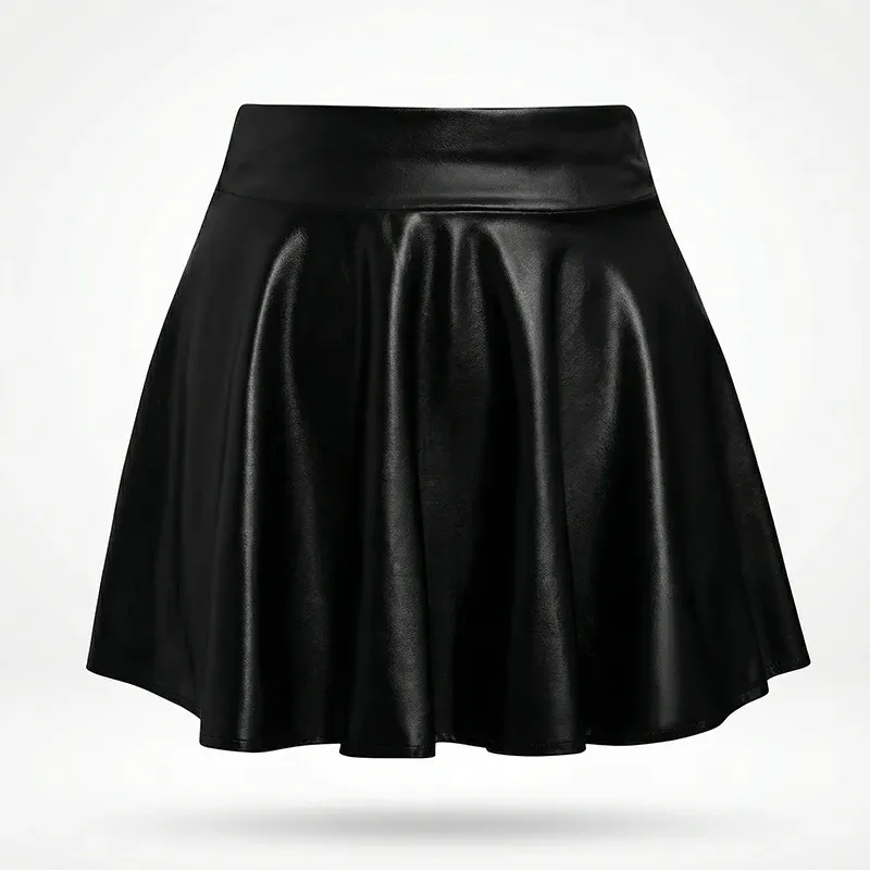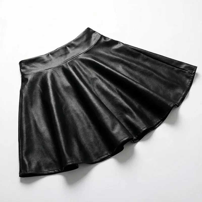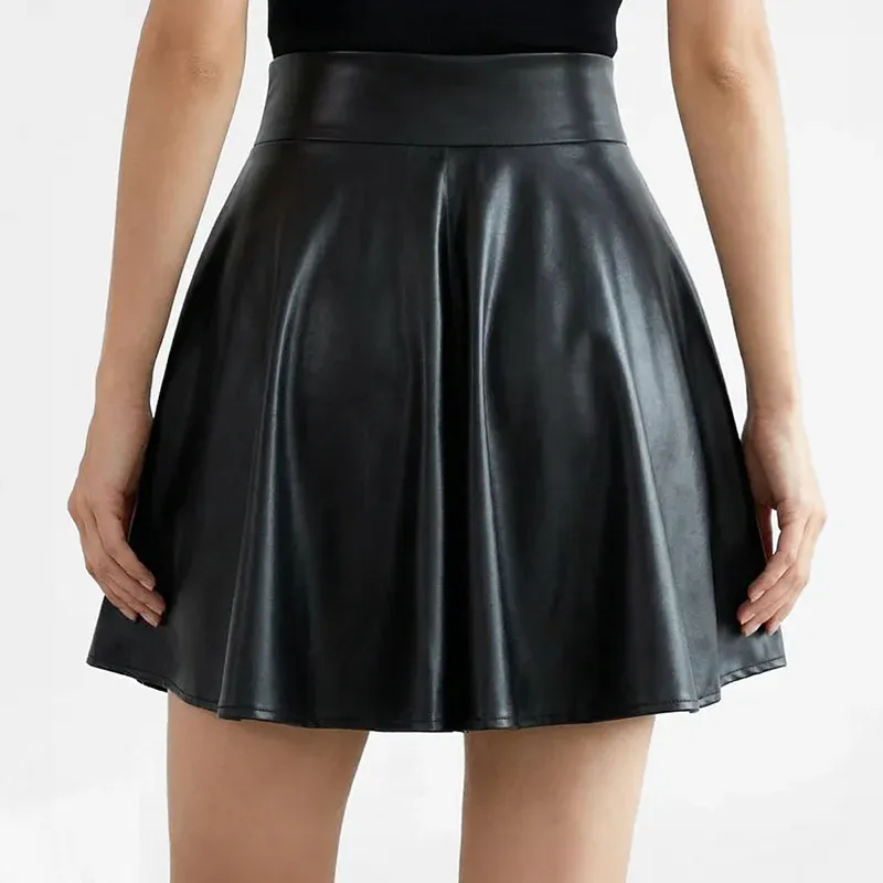 High Waisted Faux Leather Pleated Mini Skirt