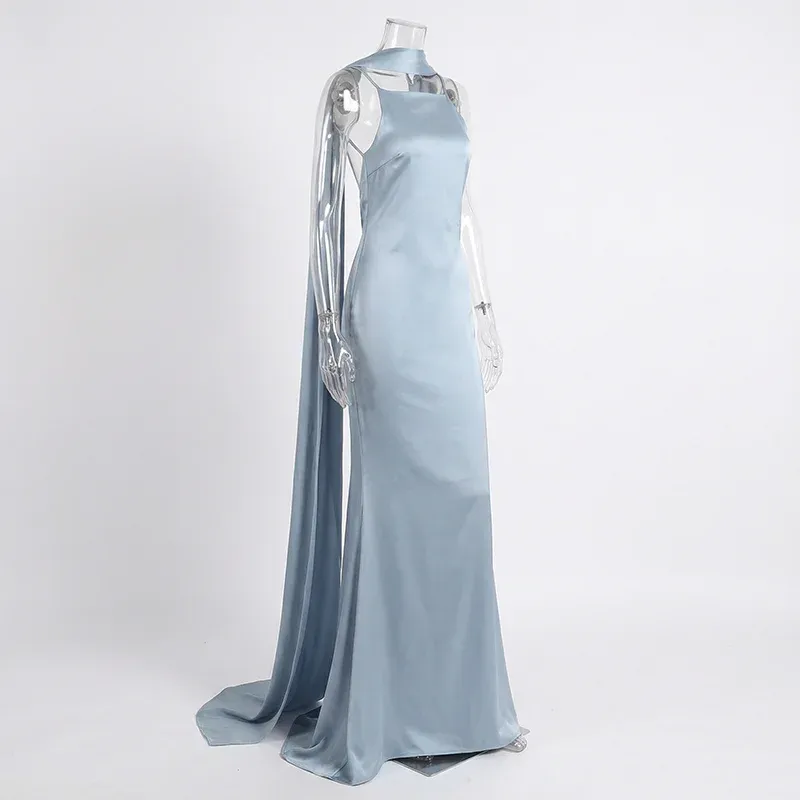 Women’s Backless Halter Maxi Dress Evening Gown