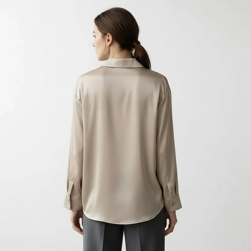 Crafted from soft, lightweight material, this blouse provides smooth texture and all-day comfort. A relaxed silhouette allows for freedom of movement while maintaining a flattering shape. It offers versatile styling options, pairing well with skirts, trousers, or casual jeans. The shirt adds a sophisticated touch to any outfit, suitable for both casual and professional occasions. Long sleeves and subtle cuff details provide elegance while offering protection during cooler weather.