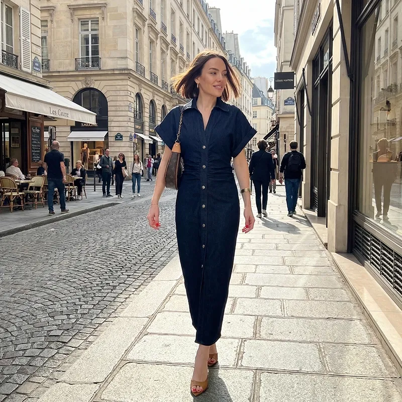 Made from soft, breathable denim, this dress ensures comfort throughout the year. The button-down front adds a classic touch, allowing for adjustable styling and versatility. Collared neckline offers a polished appearance, suitable for both casual and semi-formal occasions. The tailored waist provides a comfortable fit, accentuating your natural curves gracefully. Layer this dress with jackets or cardigans during cooler months to adapt to changing weather.