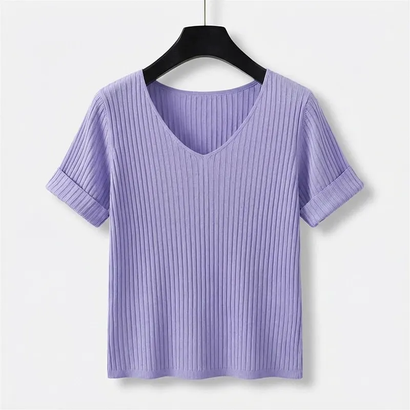 Women’s Knit Shirt Short Sleeve V-Neck Top