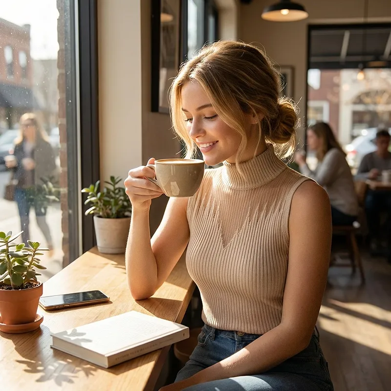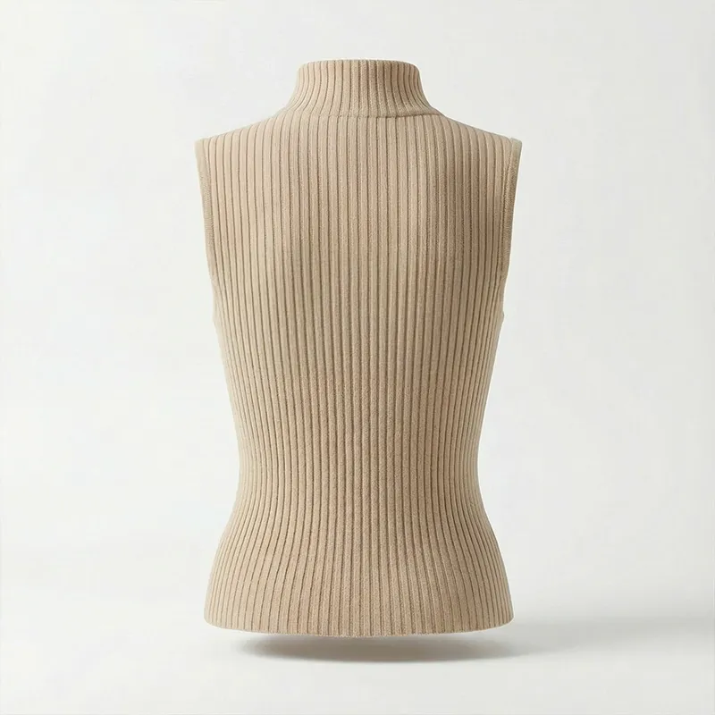 This elegant garment will keep you comfortable during chilly autumn and winter days. Its slim fit enhances natural silhouette while allowing easy movement throughout daily routines. A high neckline adds warmth while maintaining a refined overall appearance. Sleeveless design creates versatility for layering over shirts or under jackets.