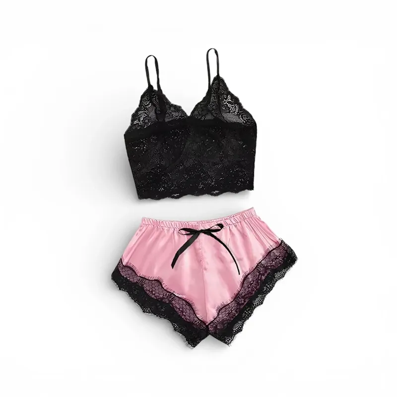 Madison T.The shorts and lace top look super cute. I really like how lightweight they are, and it makes bedtime extra cozy for me.