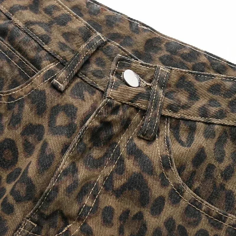 Women’s Leopard Jeans Wide Leg Denim Pants
