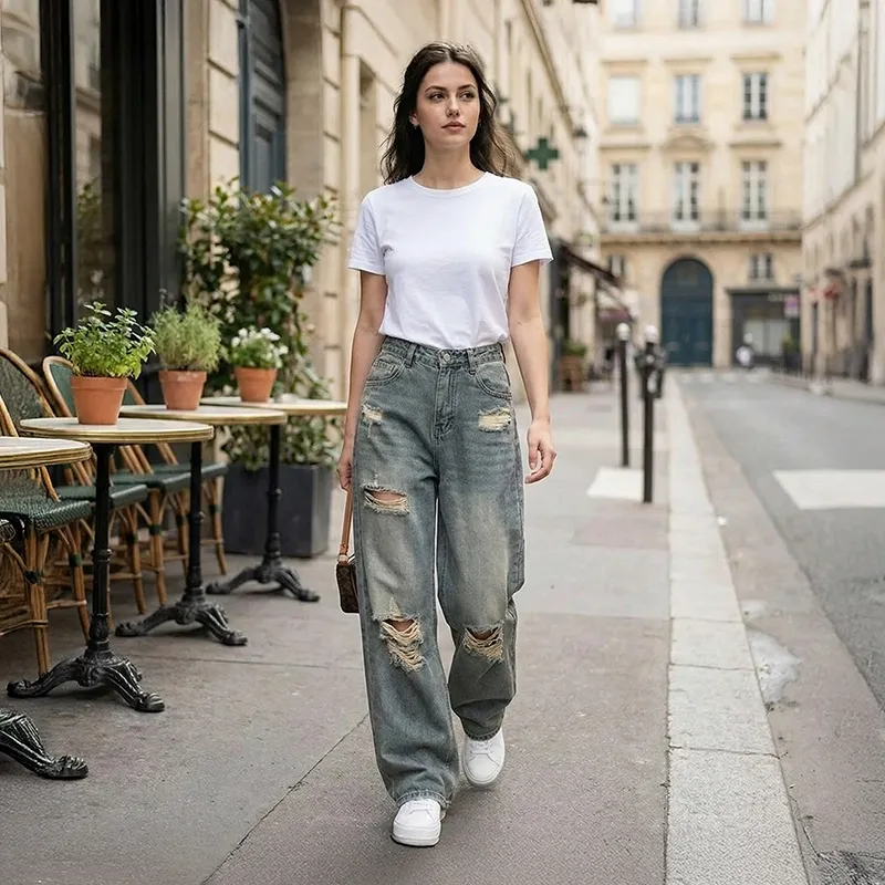 Women’s Ripped Jeans Loose Fit High Waist Pants