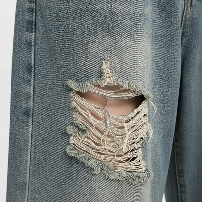 These jeans offer a relaxed fit, perfect for everyday occasions with ease. The high-waist design contours the figure while remaining comfortable for extended wear. Soft denim material ensures freedom of movement during casual or active days. Distressed details add personality without compromising durability or practical use. Pair them effortlessly with jackets, tops, or sneakers for versatile daily looks.